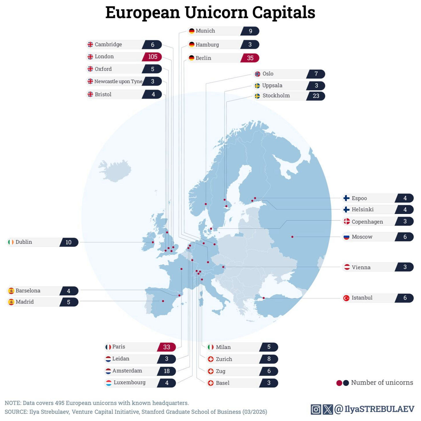 Tampoco hay suficiente con mirar el sur de Europa como un área geográfica de influencia. El esquema de Ilya Strebulaev sobre los Unicornios europeos es bastante claro: “por debajo de Milán” sólo nos queda Estambul, demasiado lejos en muchos aspectos.