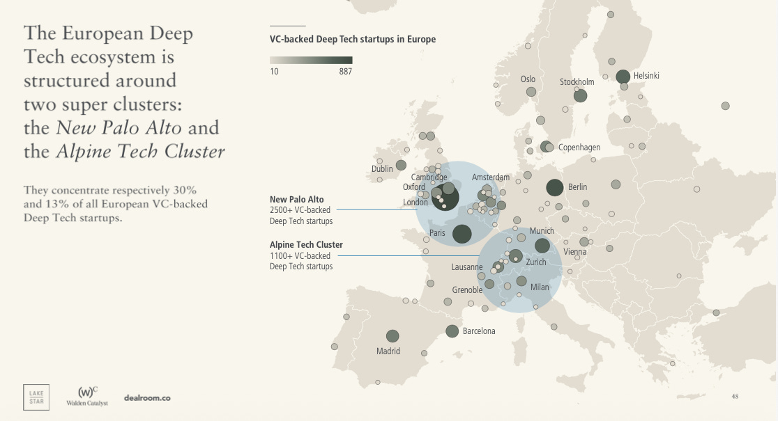 Me acordé de sus declaraciones leyendo el último European DeepTech Report 2026, y más concretamente viendo la distribución geográfica de las nuevas startups DeepTech que están capturando más dinero de inversores avanzados.